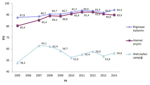TUİK, 2014 yılı Girişimlerde Bilgi Teknolojileri Kullanım Araştırmasını yayınladı.