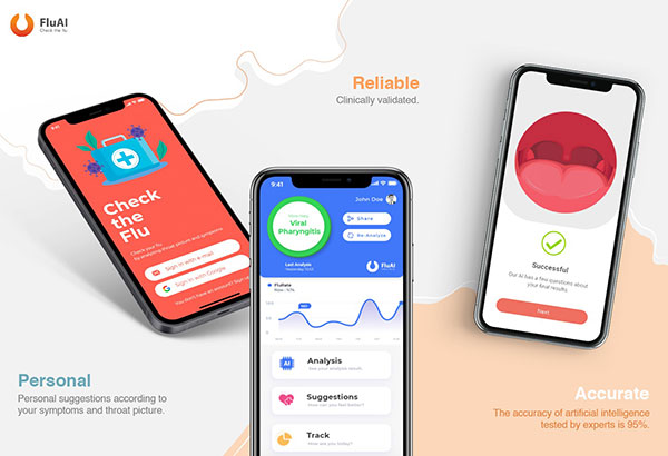 Hastanelerde uzun bekleme süreleri, muayene ve ulaşım maliyetleri, hastaneden enfeksiyon bulaşma riski, hastanelerin yoğunluğu karşılayamaması gibi problemleri ortadan kaldıracak bir çözüm sunan FluAI; hastalık belirtisi gösteren kişilerde, hastaların ateş, öksürük ve benzeri şikayetleri ile boğazının fotoğrafı üzerinden yapay zeka analizi yaparak hastalık durumu hakkında bilgiler ve öneriler veriyor.
